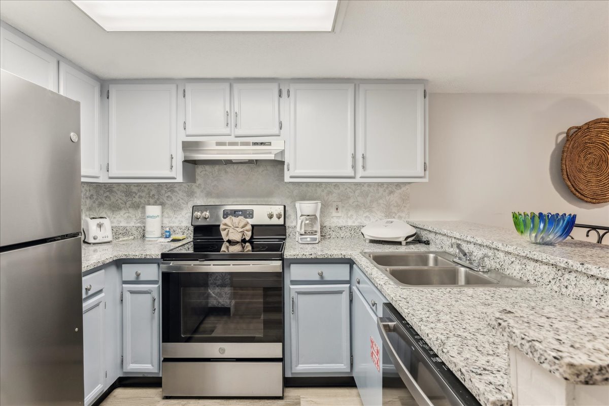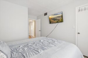 Designed for comfort and style, the condo comfortably sleeps 4 guests, with a spacious primary bedroom featuring a king bed and a second bedroom offering a cozy full bed. Both rooms are beautifully appointed with modern furnishings and hardwood floors throughout the entire condo. This is a two-level condominium, both bedrooms are upstairs, with the kitchen, living, dining, and balcony on the entry level.