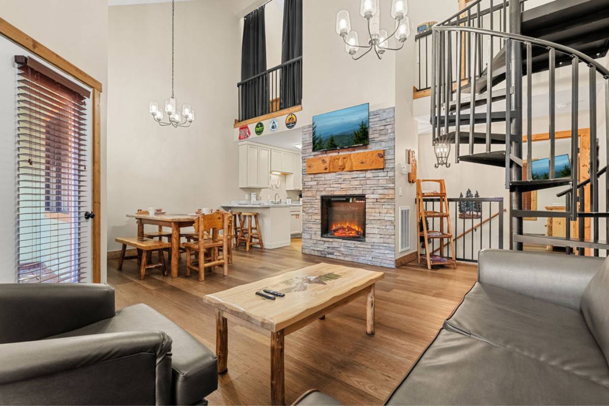 The multi-level design offers added privacy, while the loft provides extra sleeping space or a cozy hangout area. Whether you’re unwinding after a day downtown or enjoying a quiet evening in the mountains, this cabin delivers both comfort and convenience.