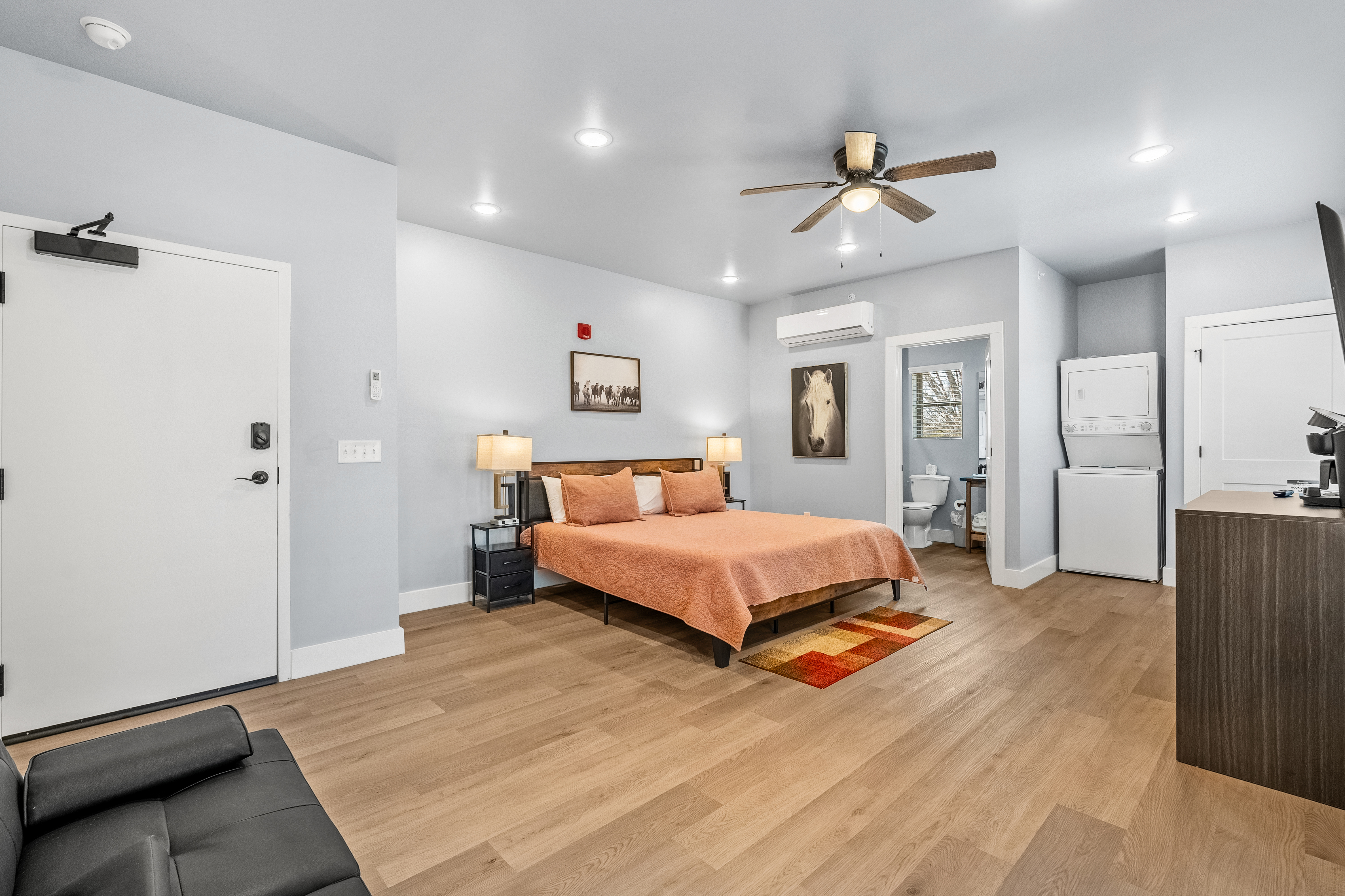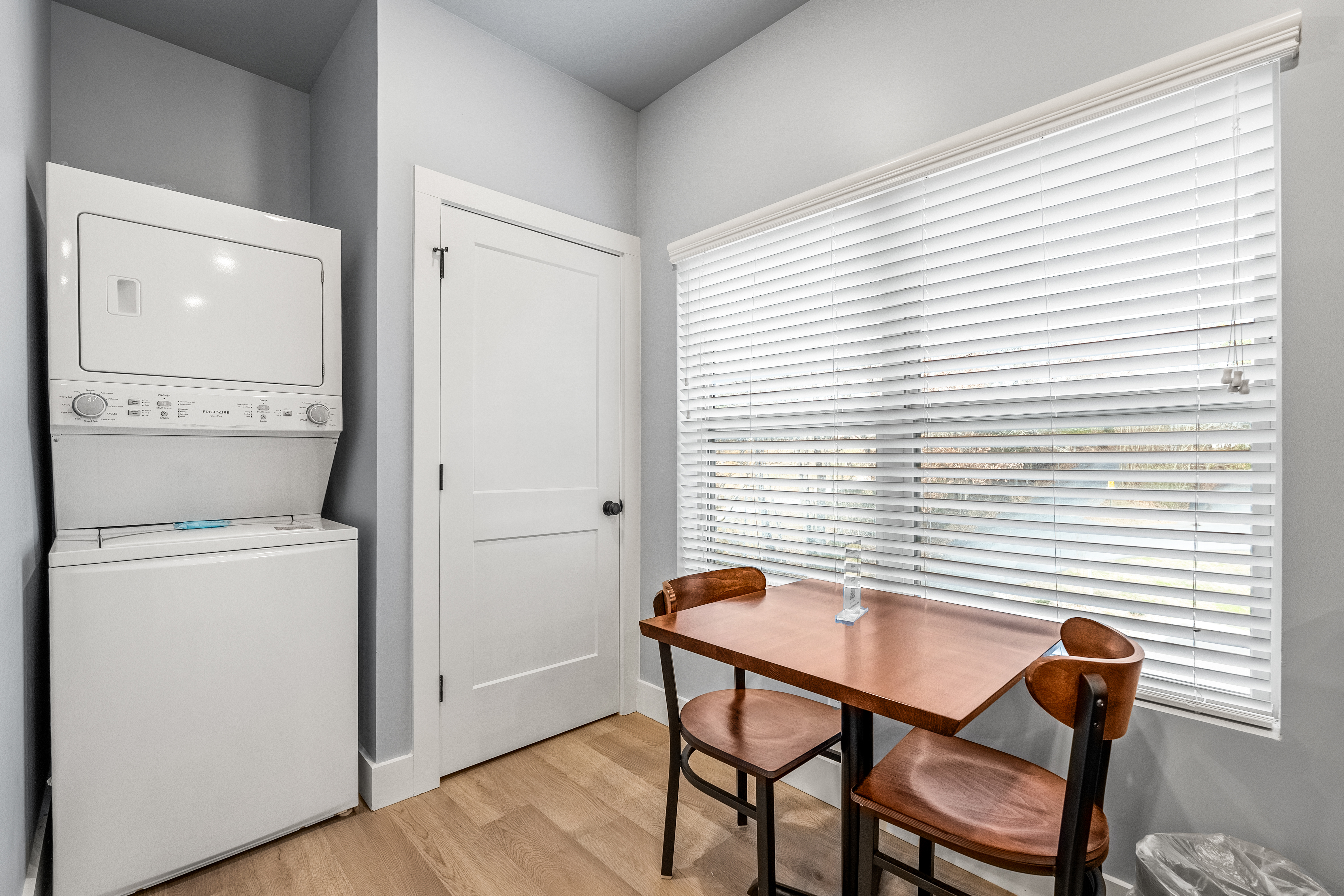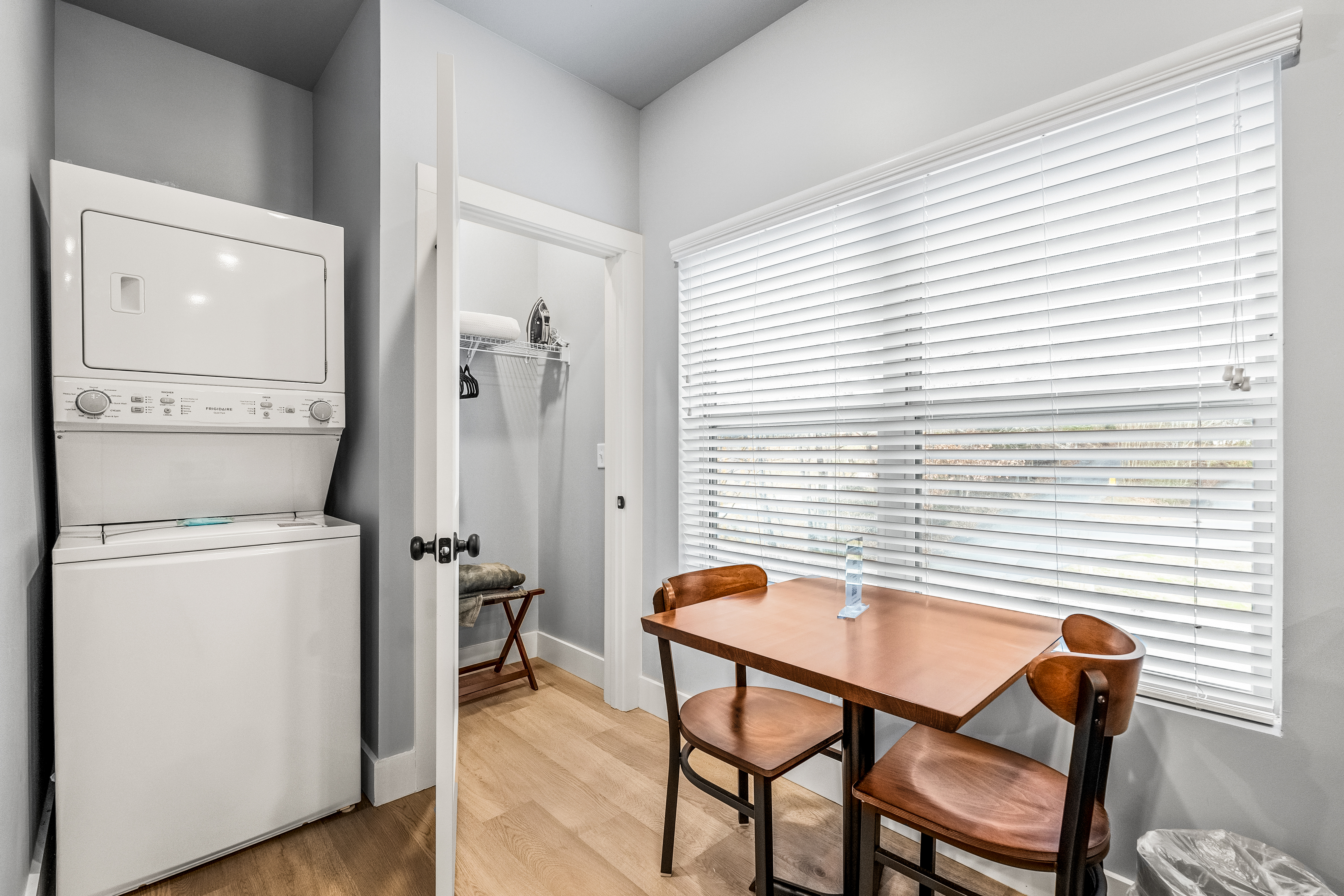 Step outside onto your private balcony to enjoy your beverage with a view, whether you're greeting the sunrise or unwinding after a day of adventure. The full bathroom comes stocked with fresh towels, and a washer and dryer are available to meet your laundry needs.