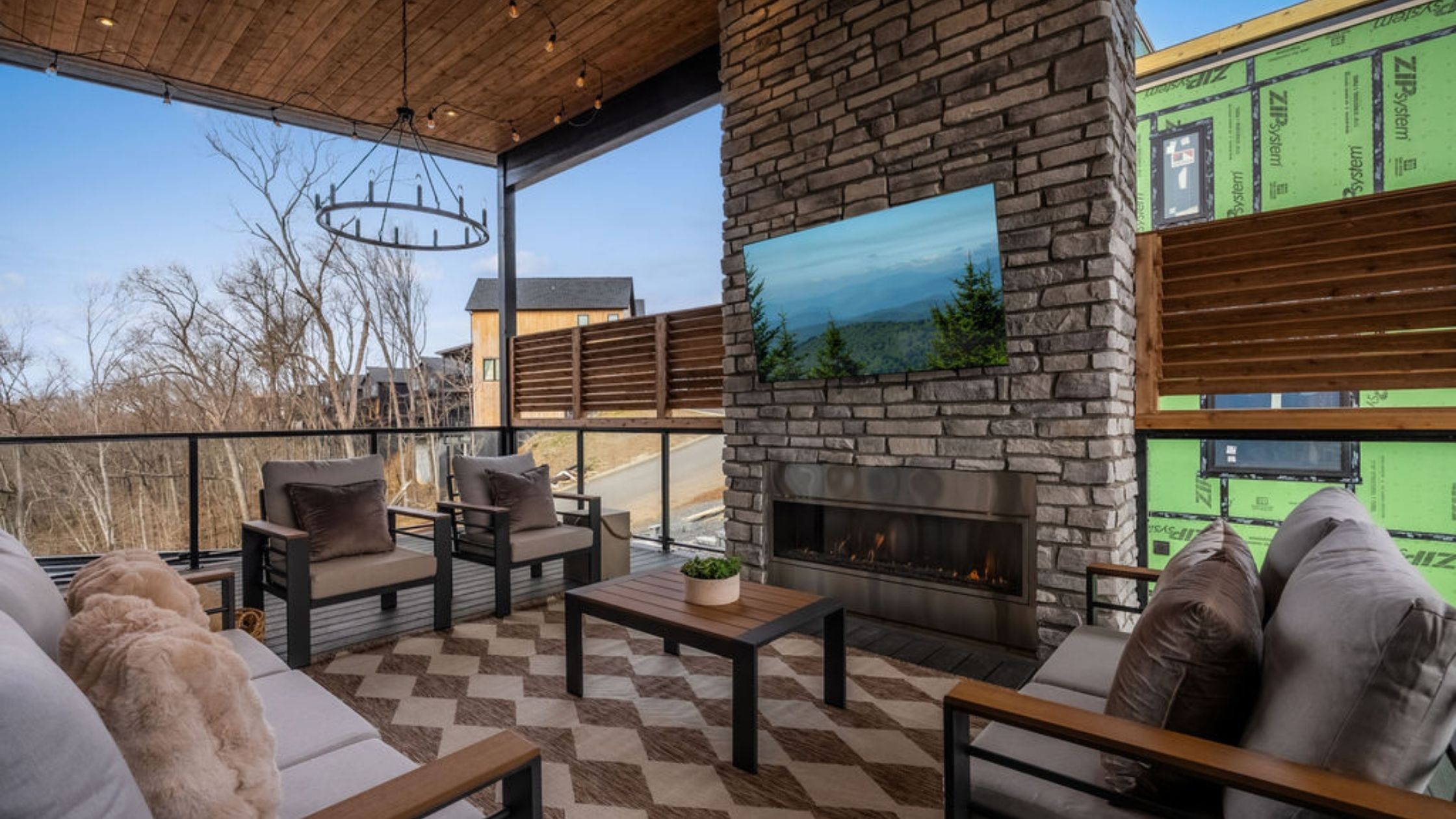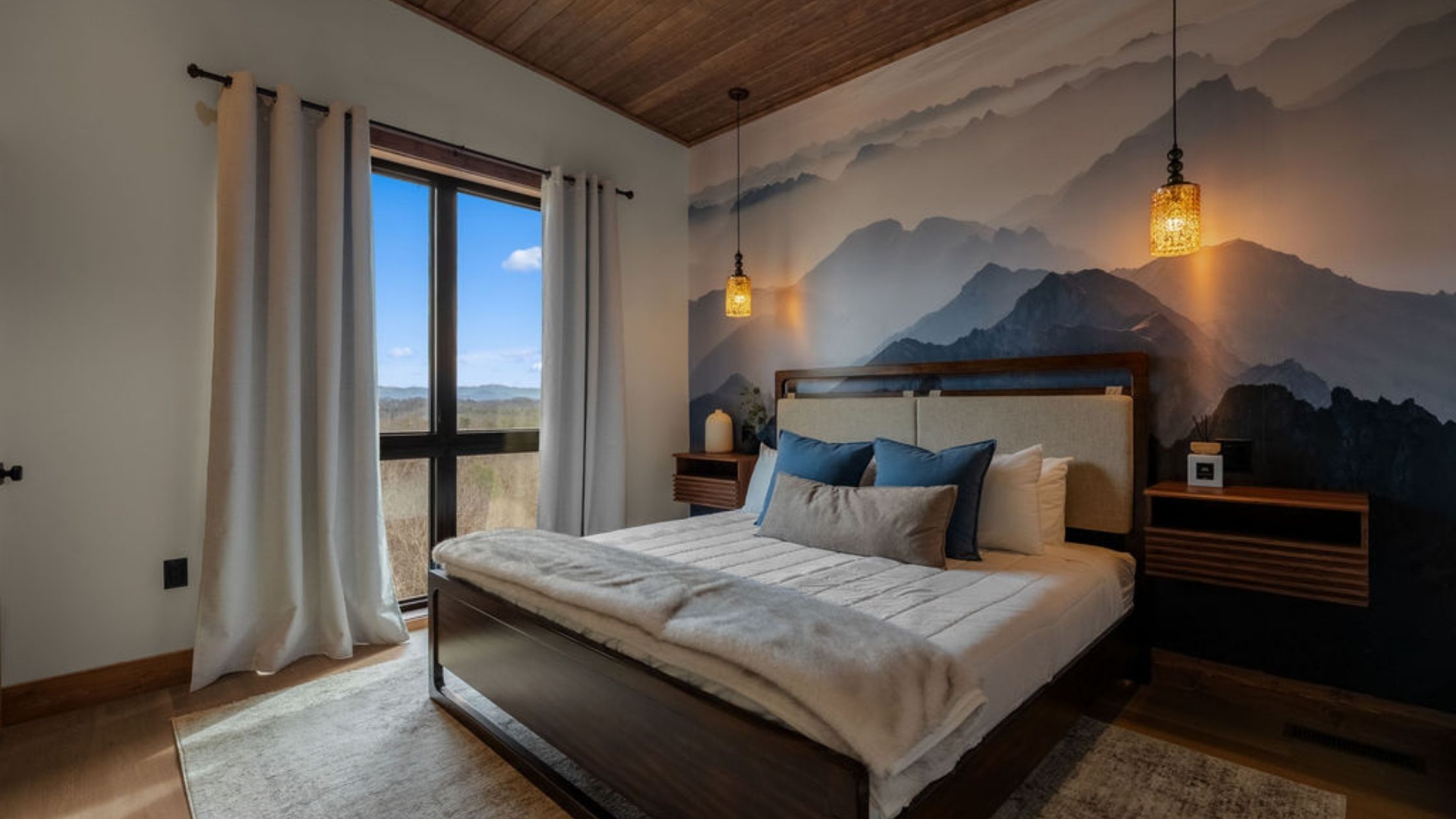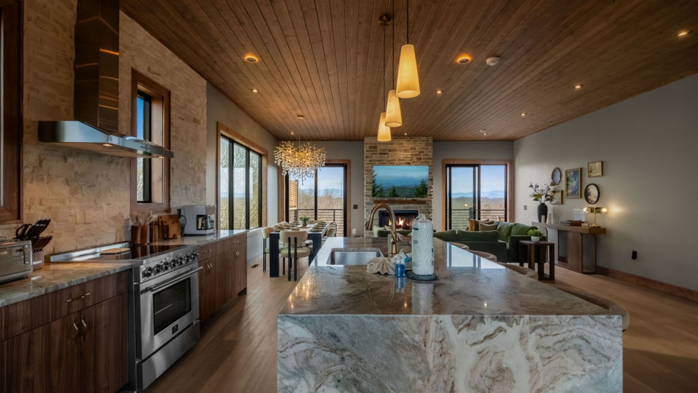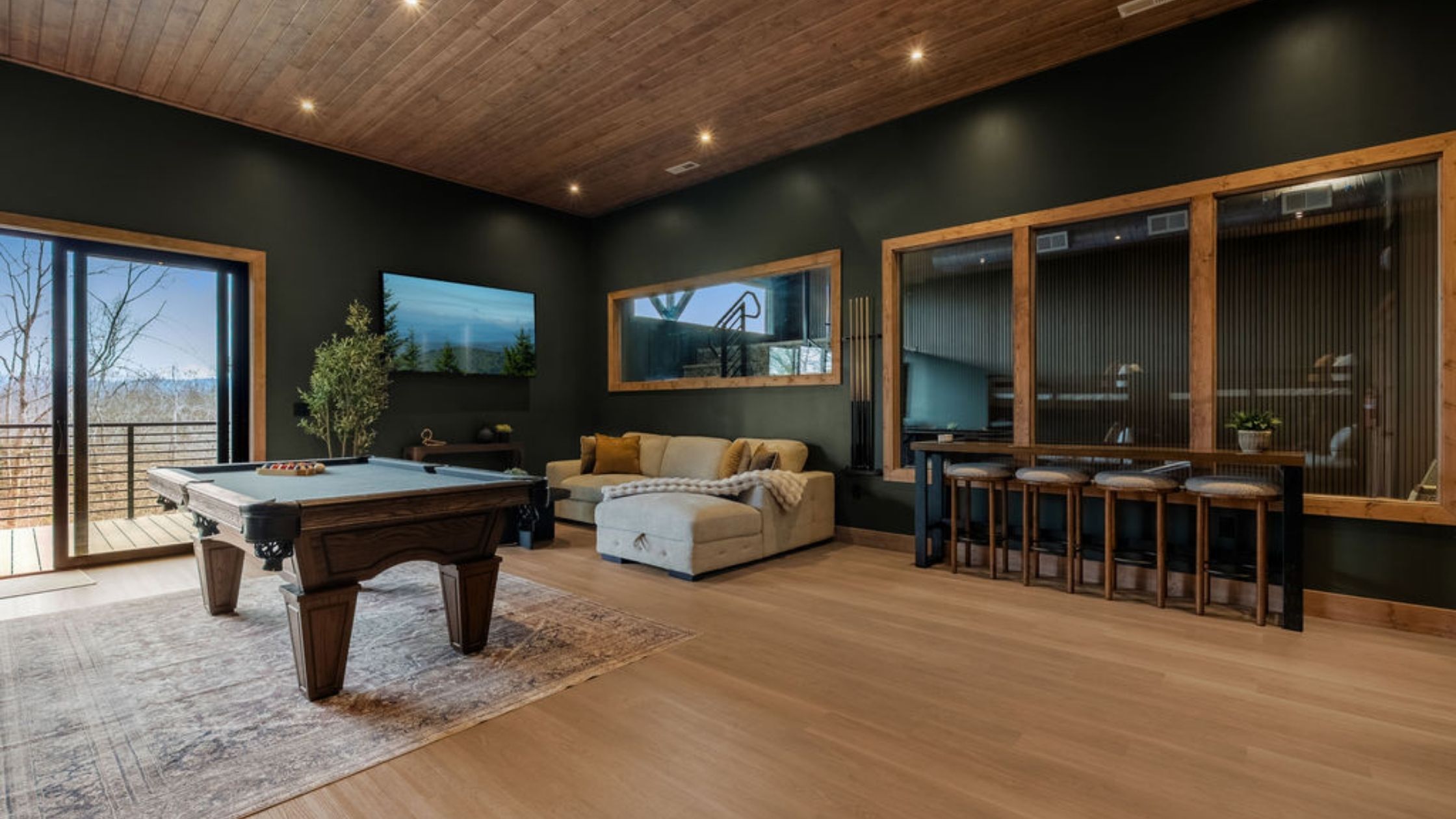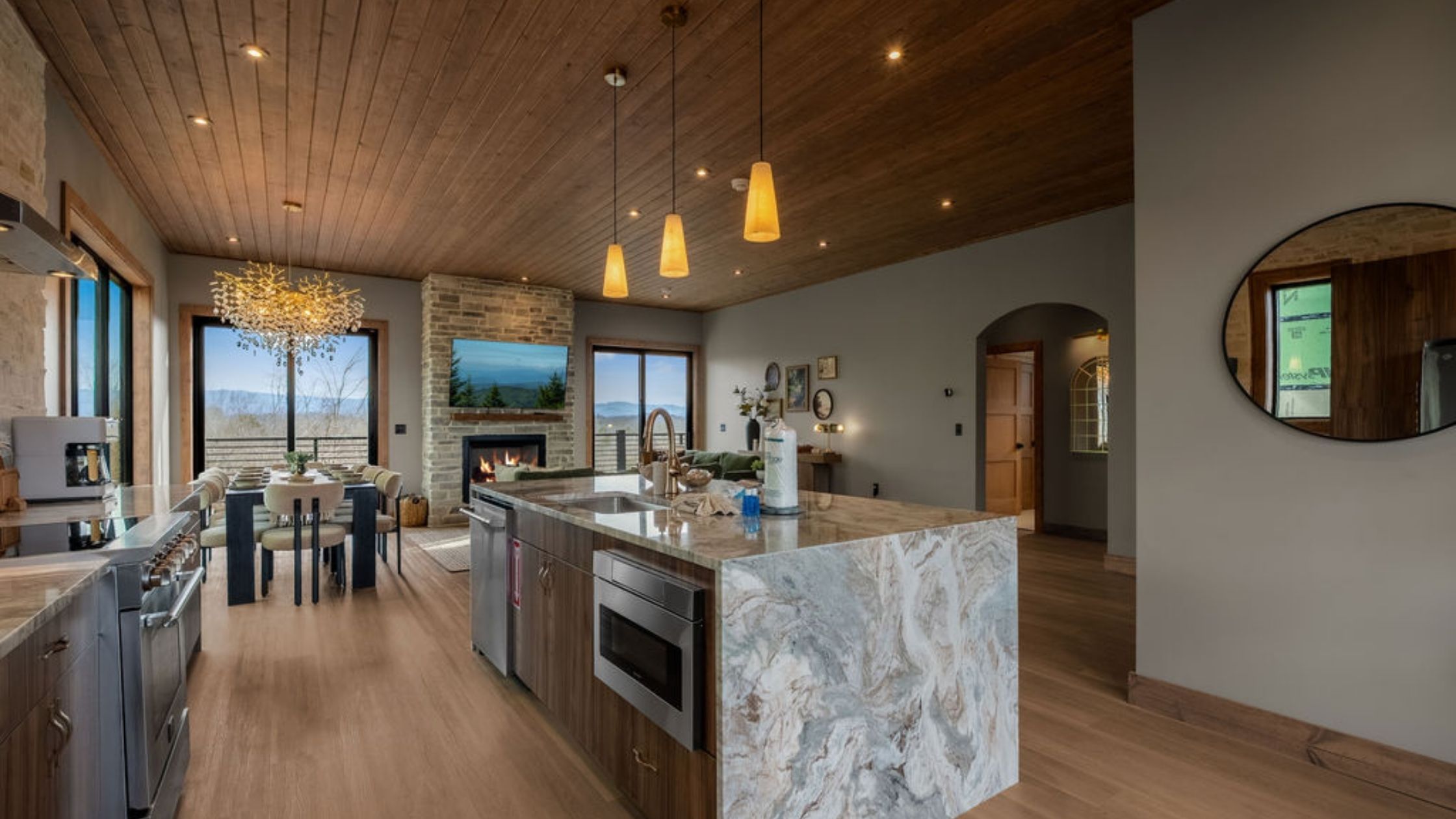 This beautifully designed 4-bedroom, 5 1/2-bathroom mountain cabin offers high-end finishes, spacious interiors, and panoramic views from every level.