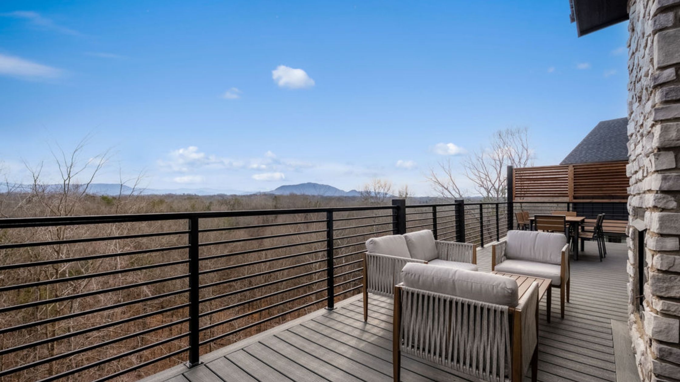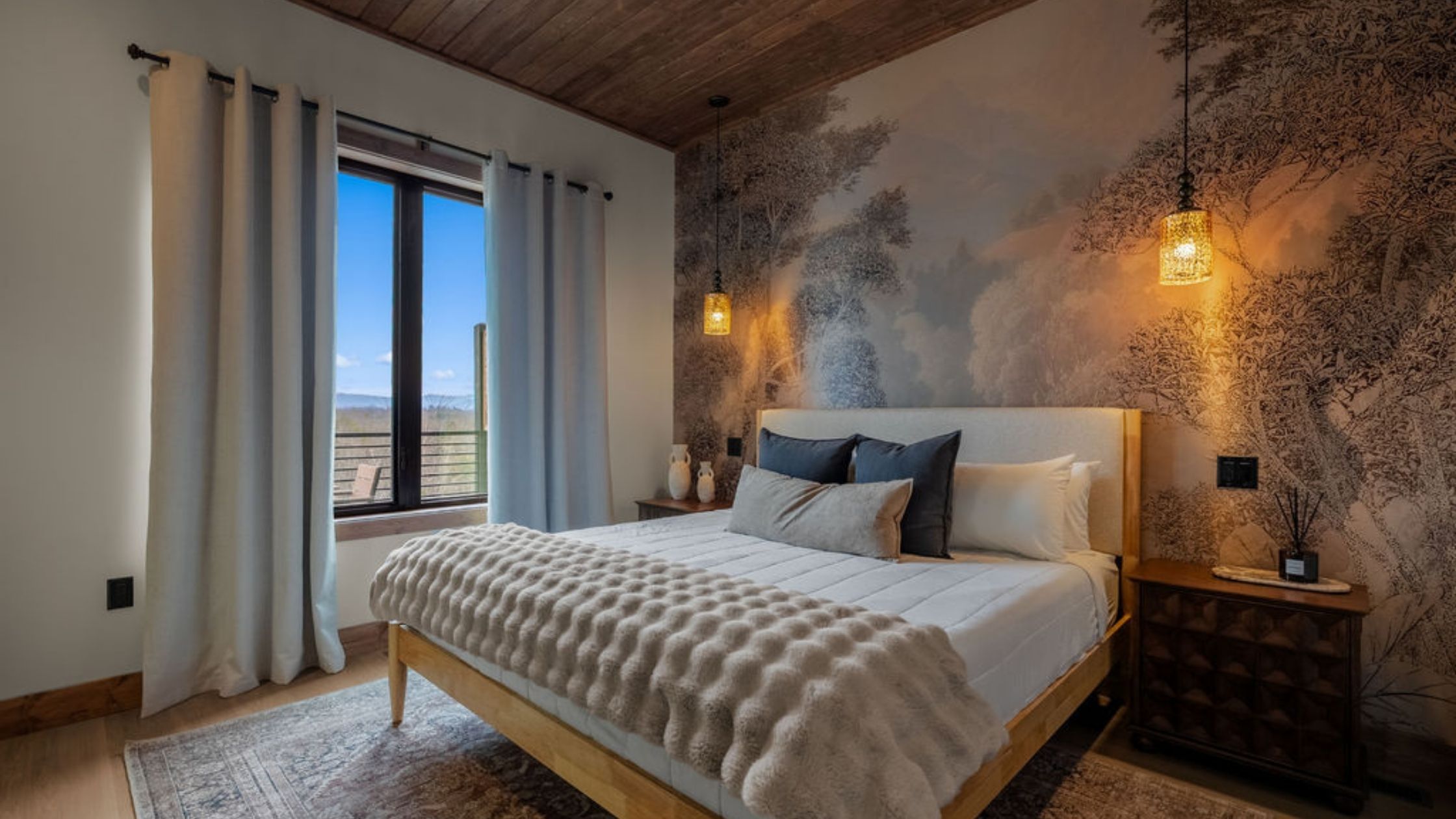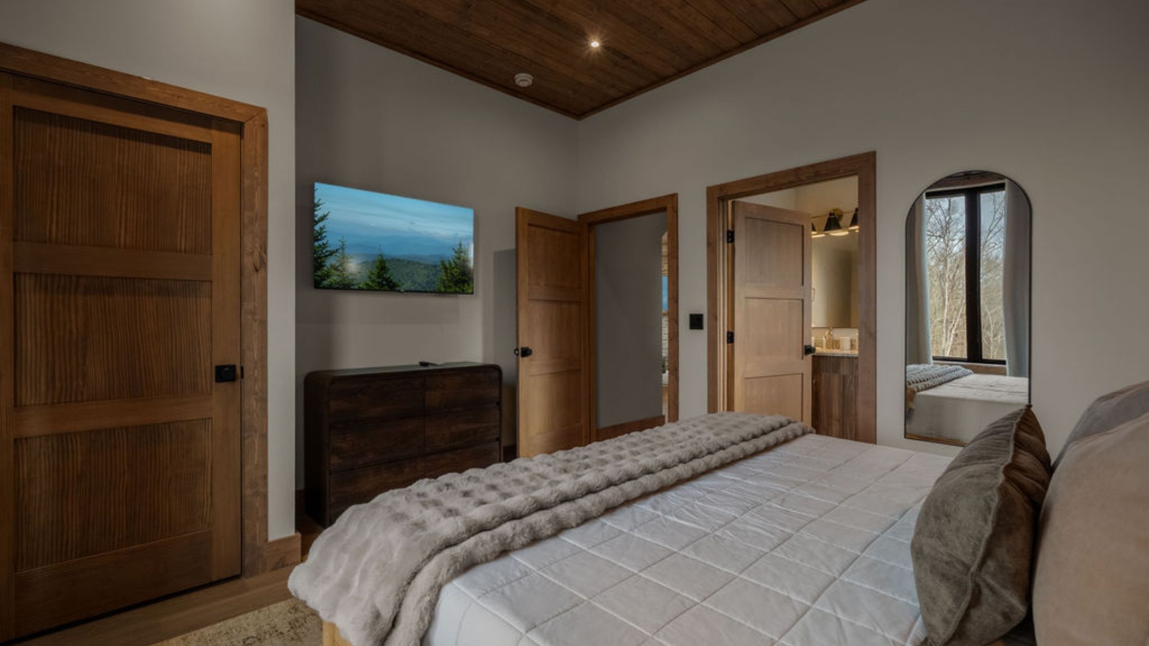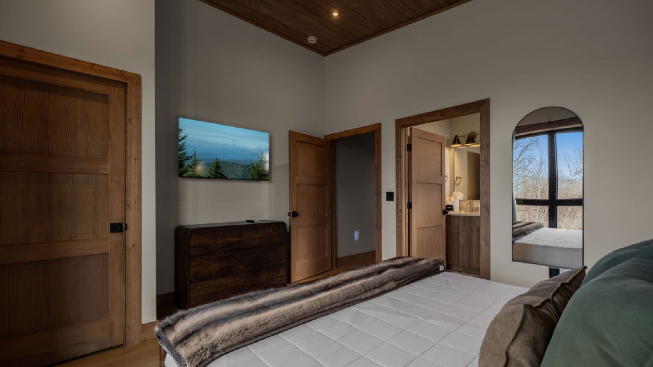 This beautifully designed 4-bedroom, 5 1/2-bathroom mountain cabin offers high-end finishes, spacious interiors, and panoramic views from every level.