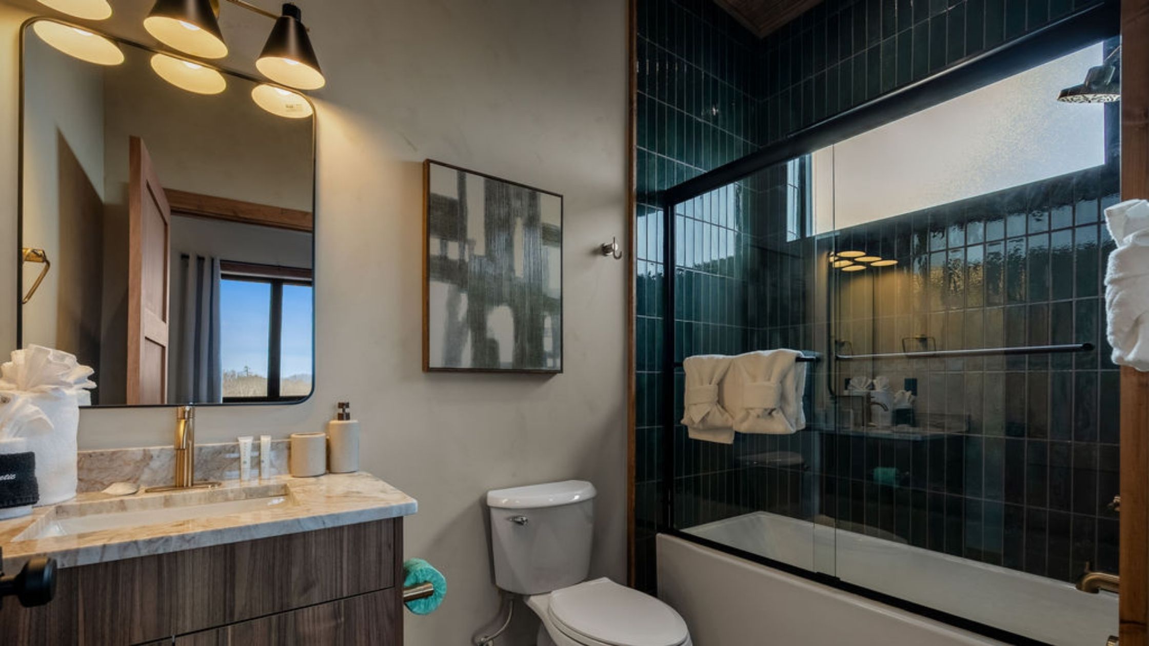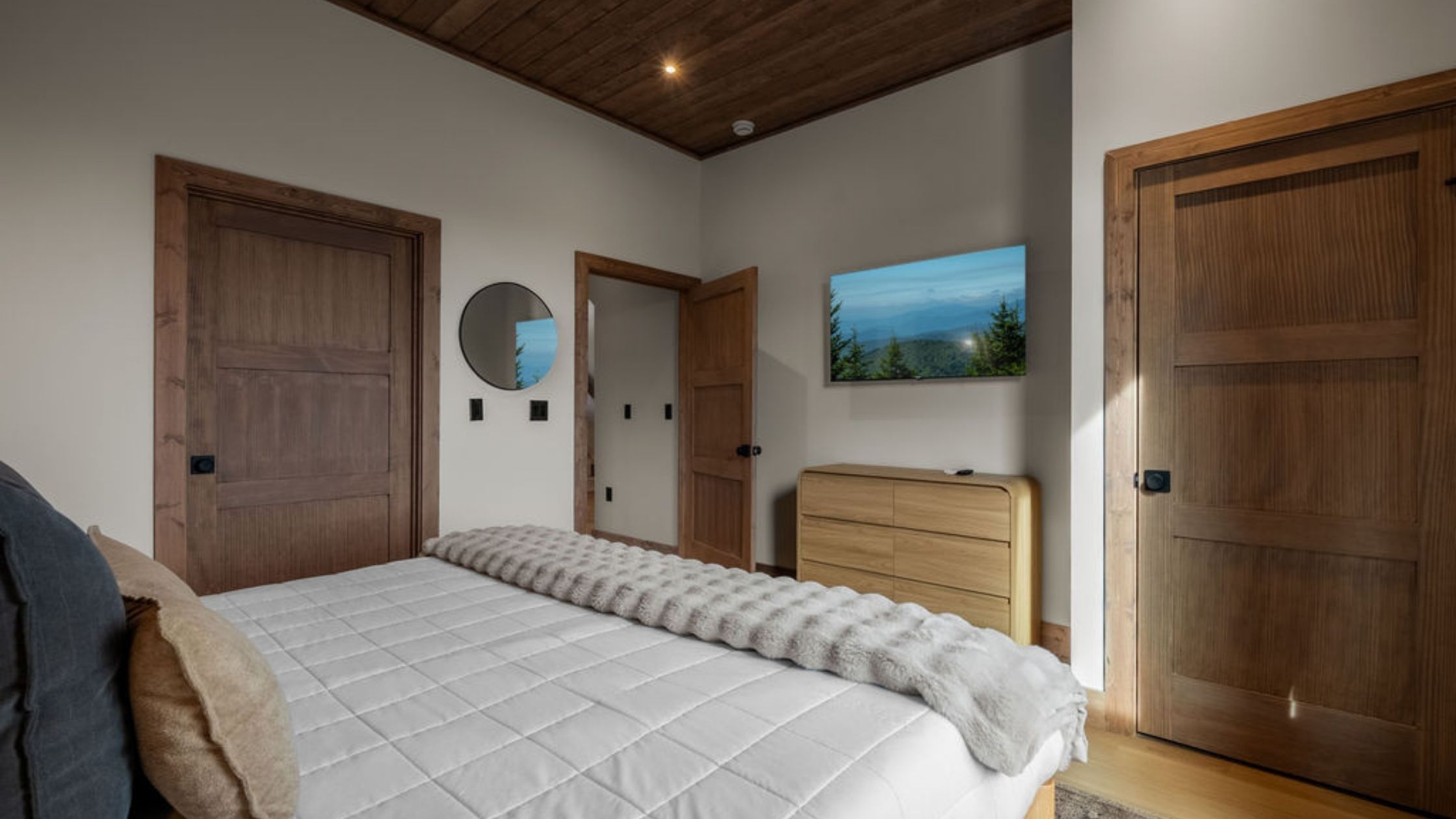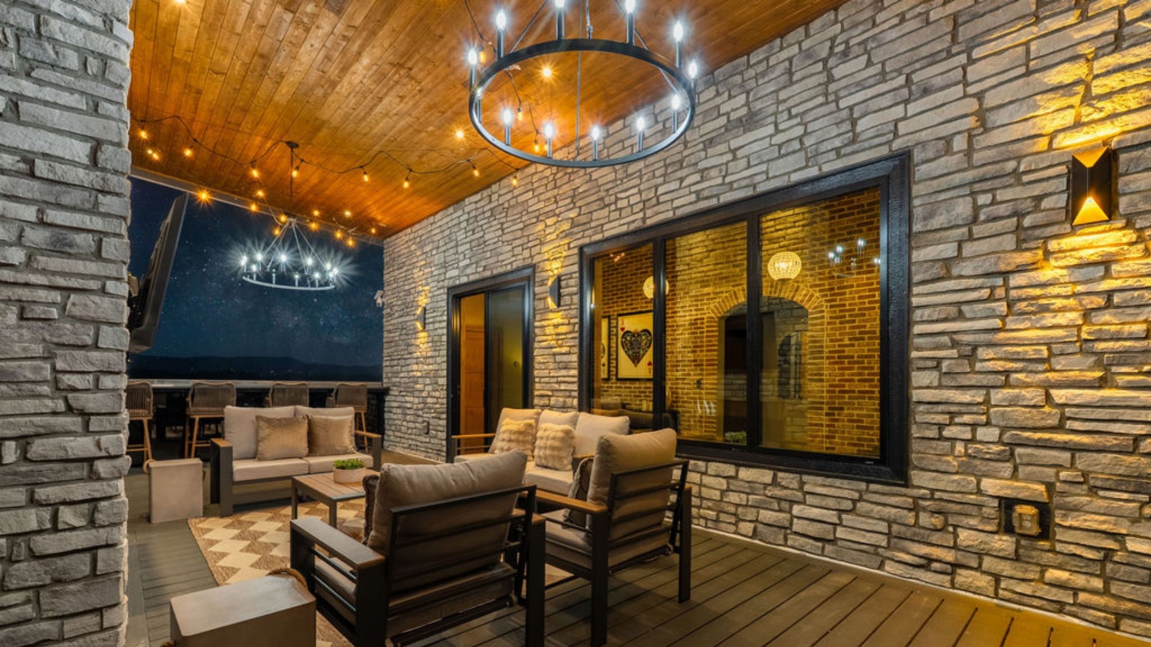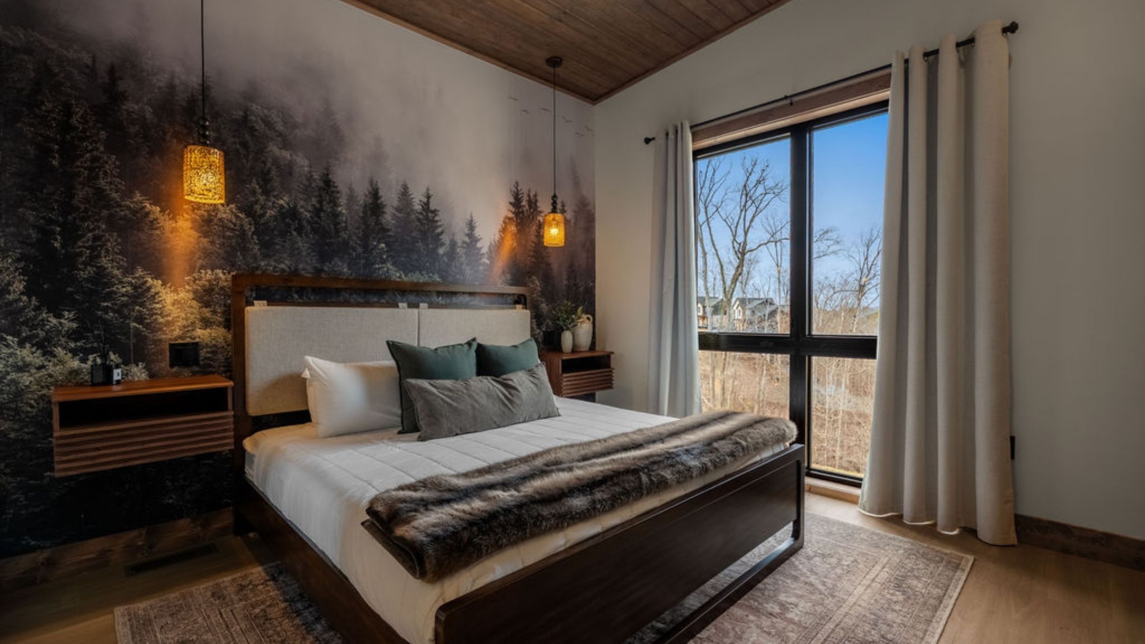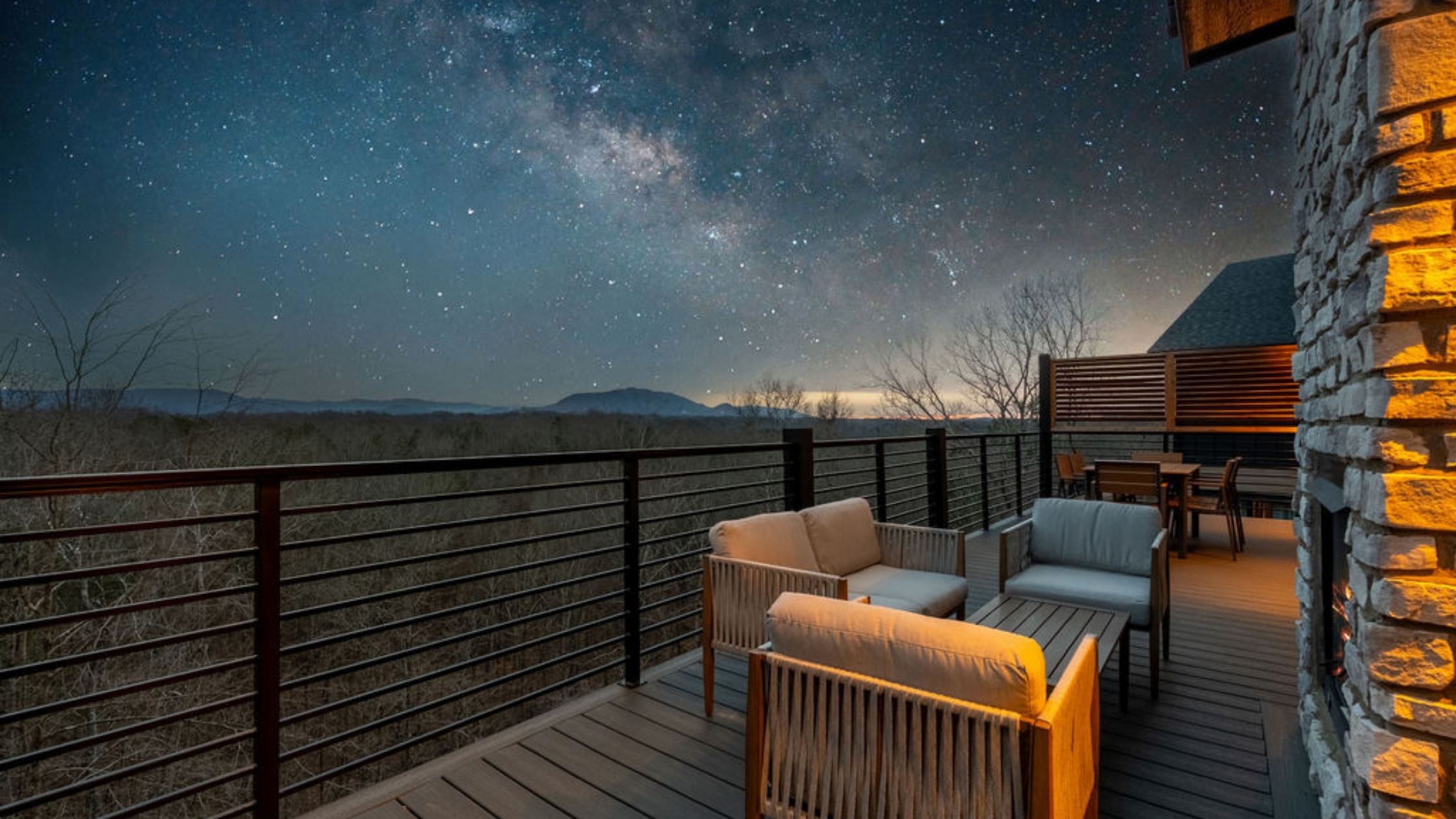 This beautifully designed 4-bedroom, 5 1/2-bathroom mountain cabin offers high-end finishes, spacious interiors, and panoramic views from every level.