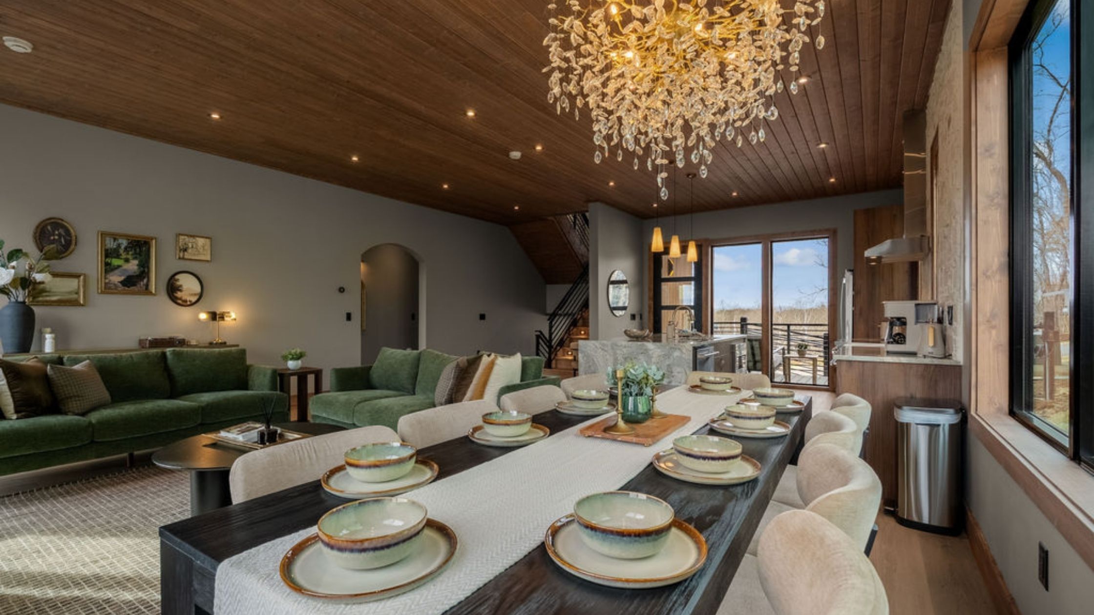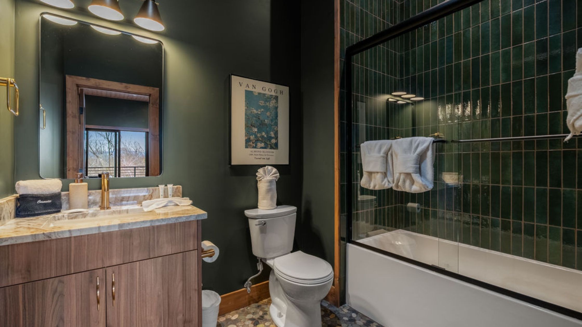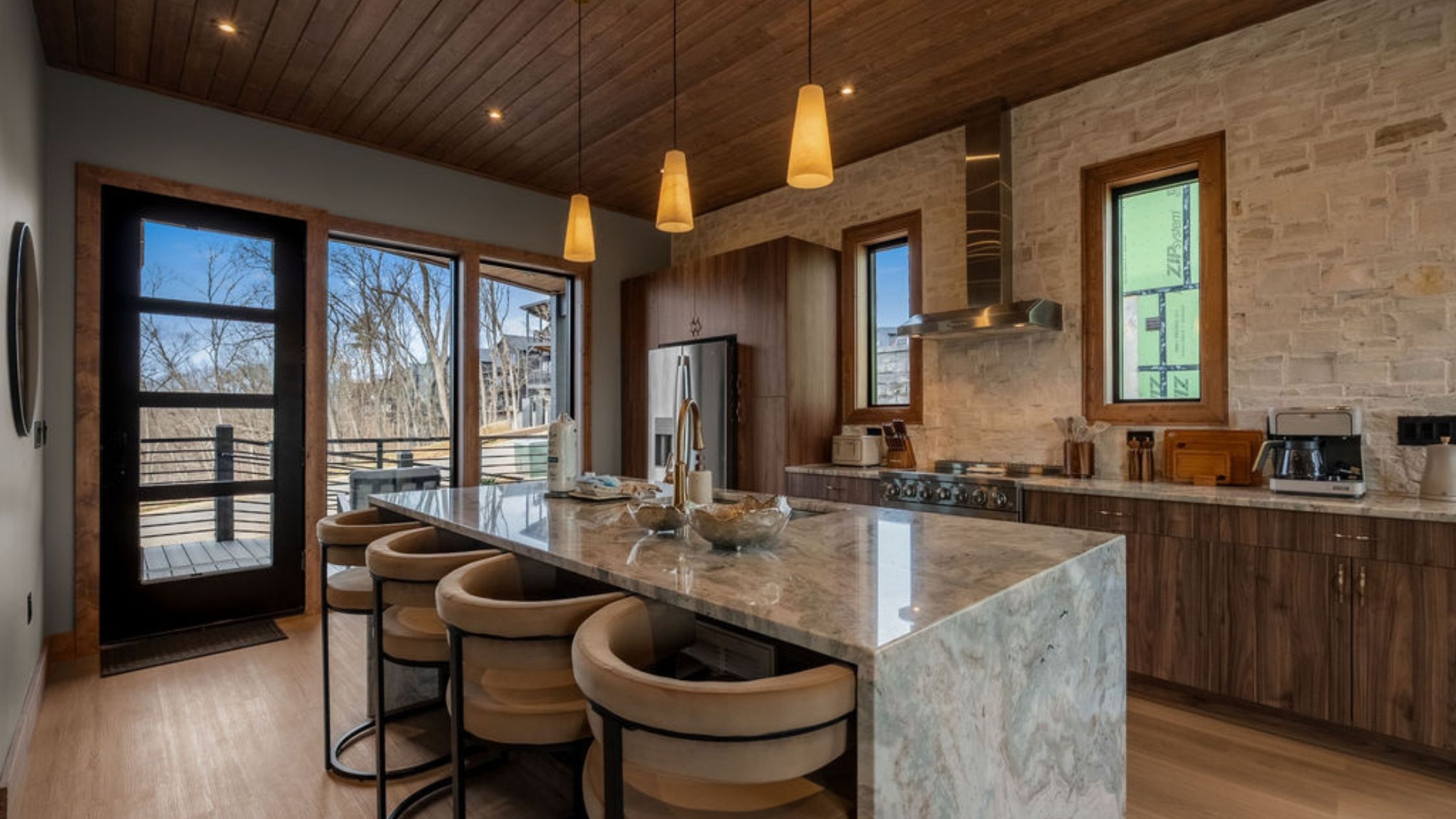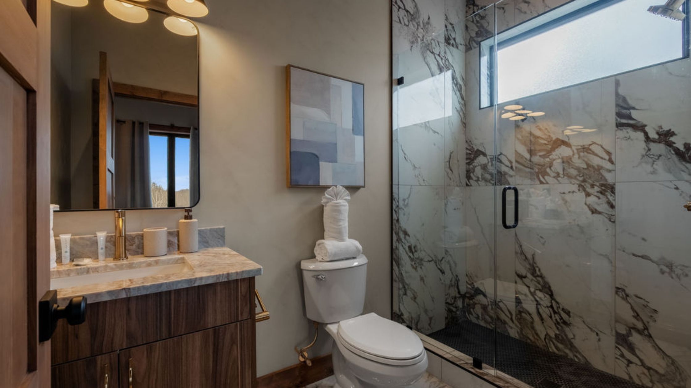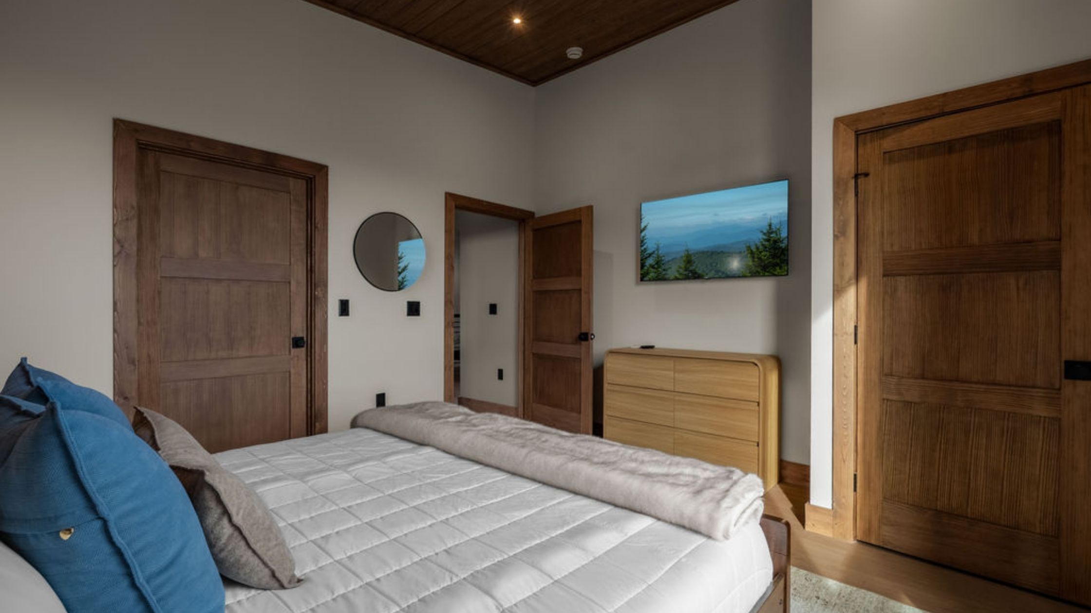 This beautifully designed 4-bedroom, 5 1/2-bathroom mountain cabin offers high-end finishes, spacious interiors, and panoramic views from every level.