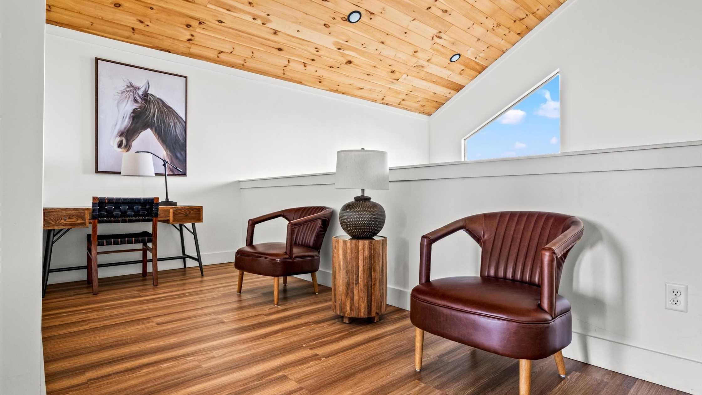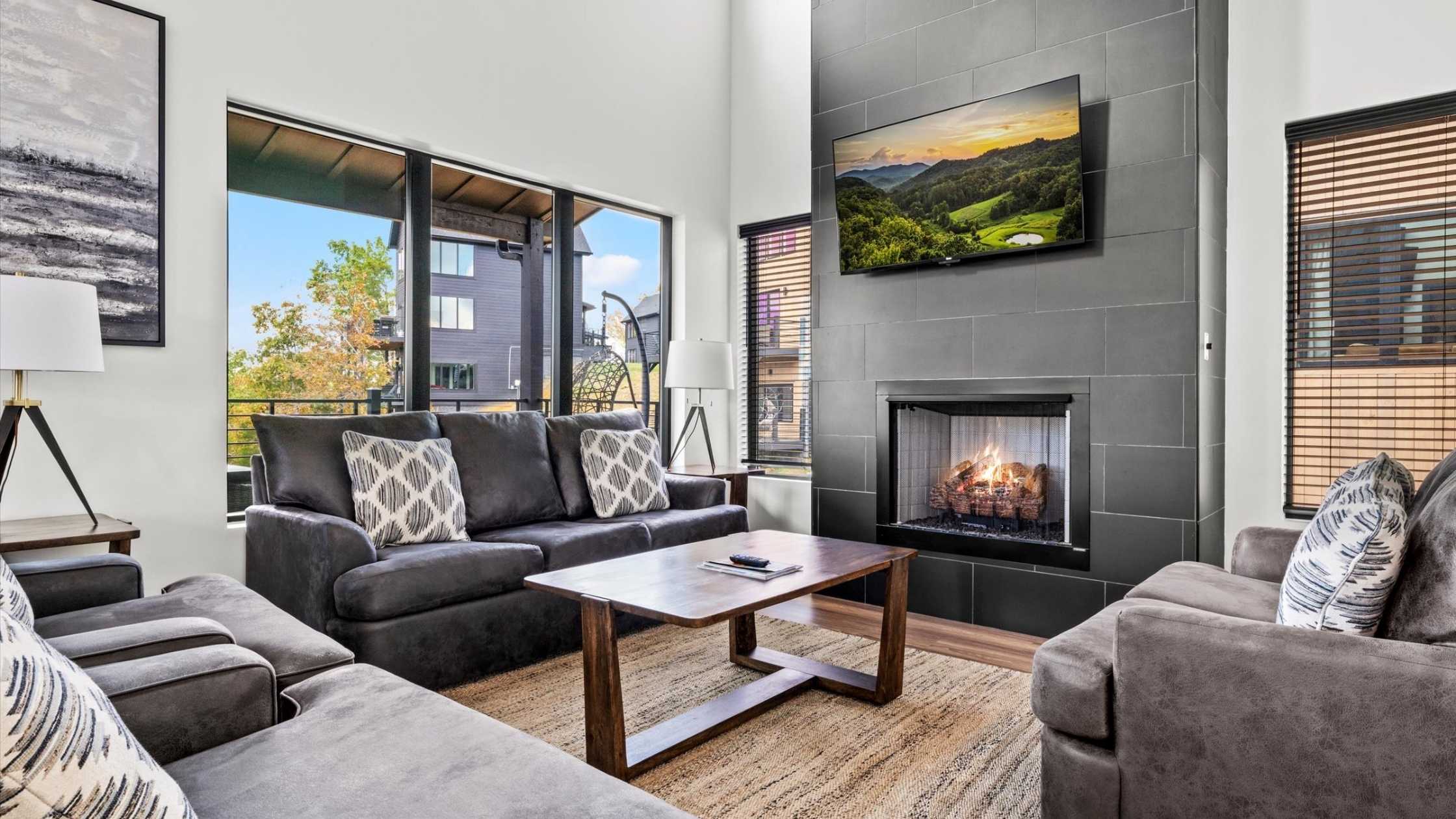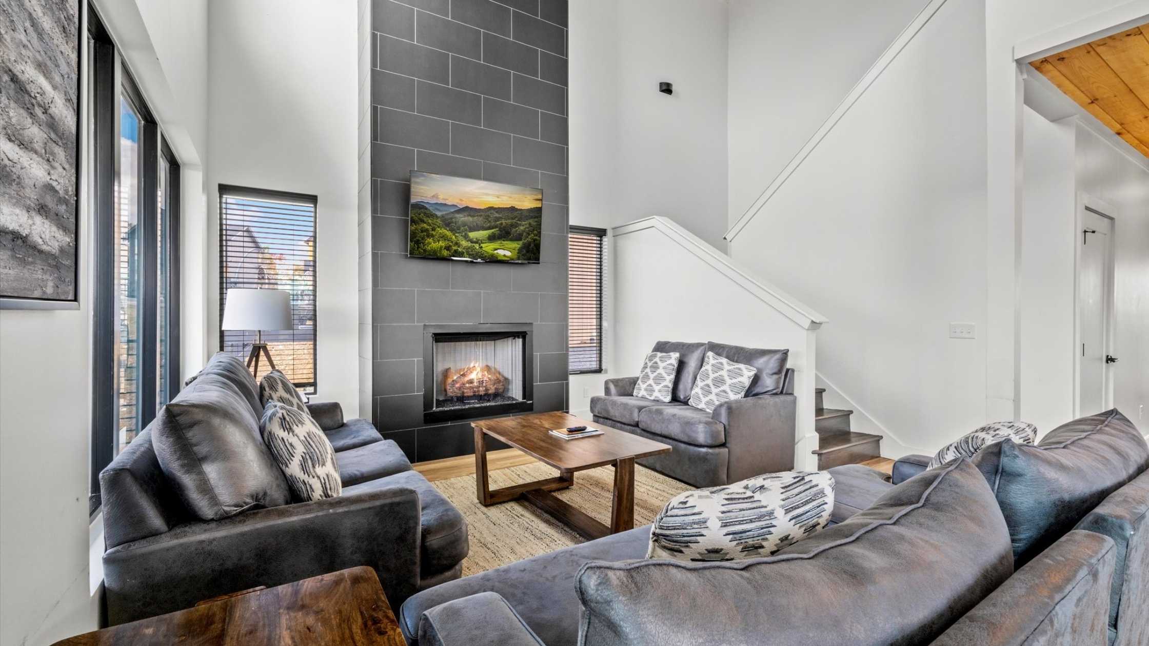 - Cozy Space: Electric fireplace, 65” flat-screen TV, comfortable sofas, and chairs.