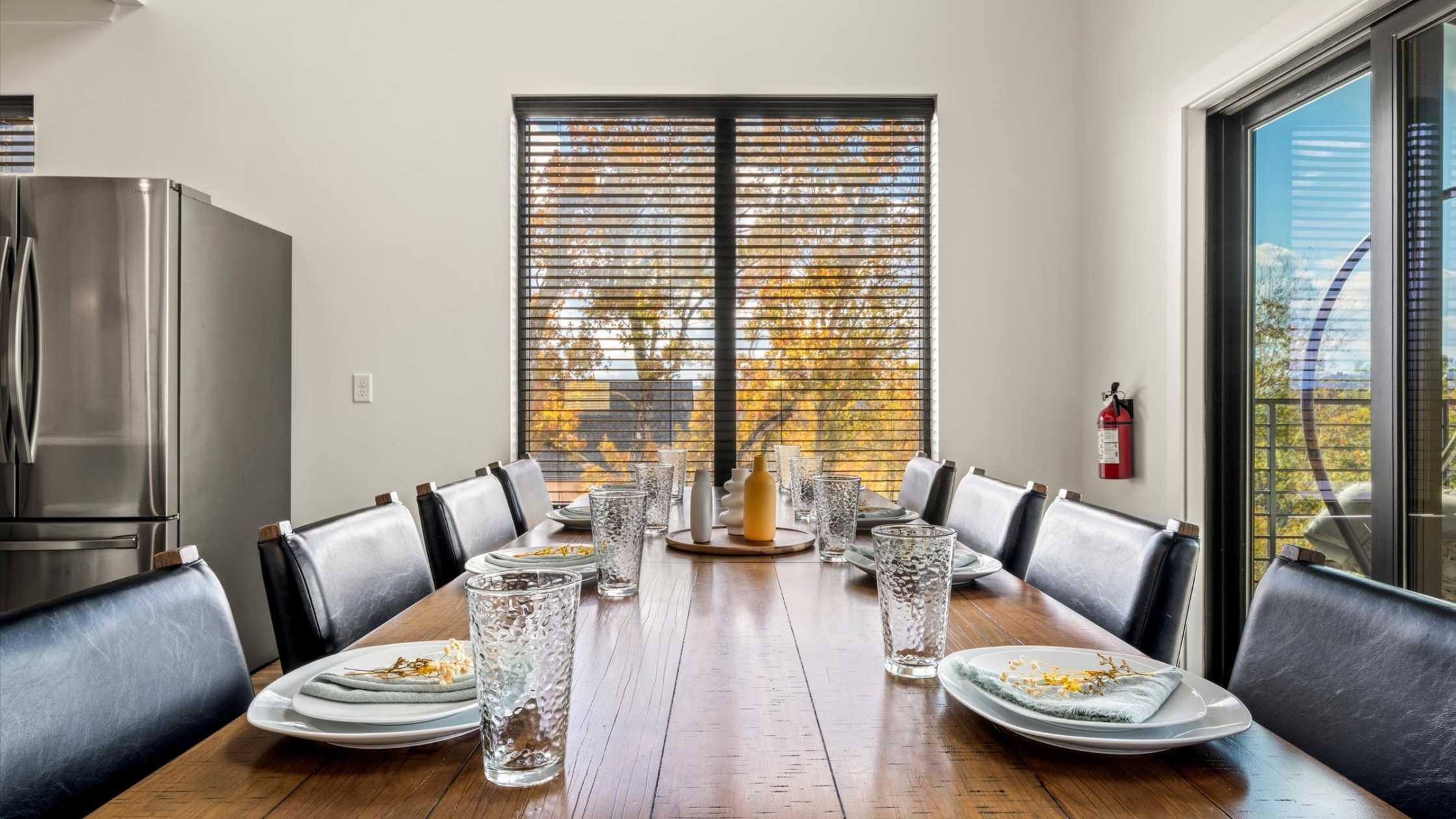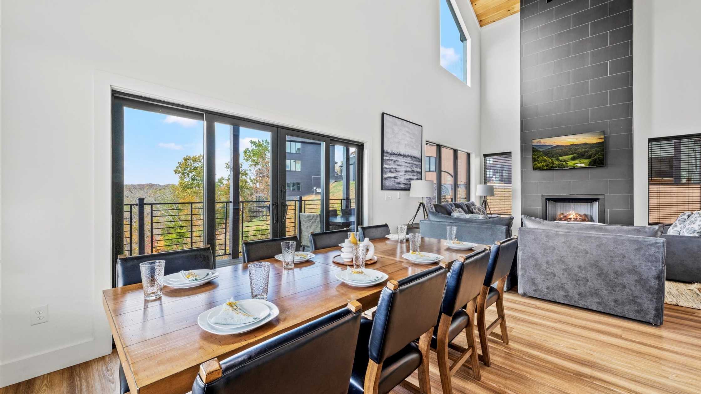 - Dining Area: Seats up to 12 with a large table, bar, and island.