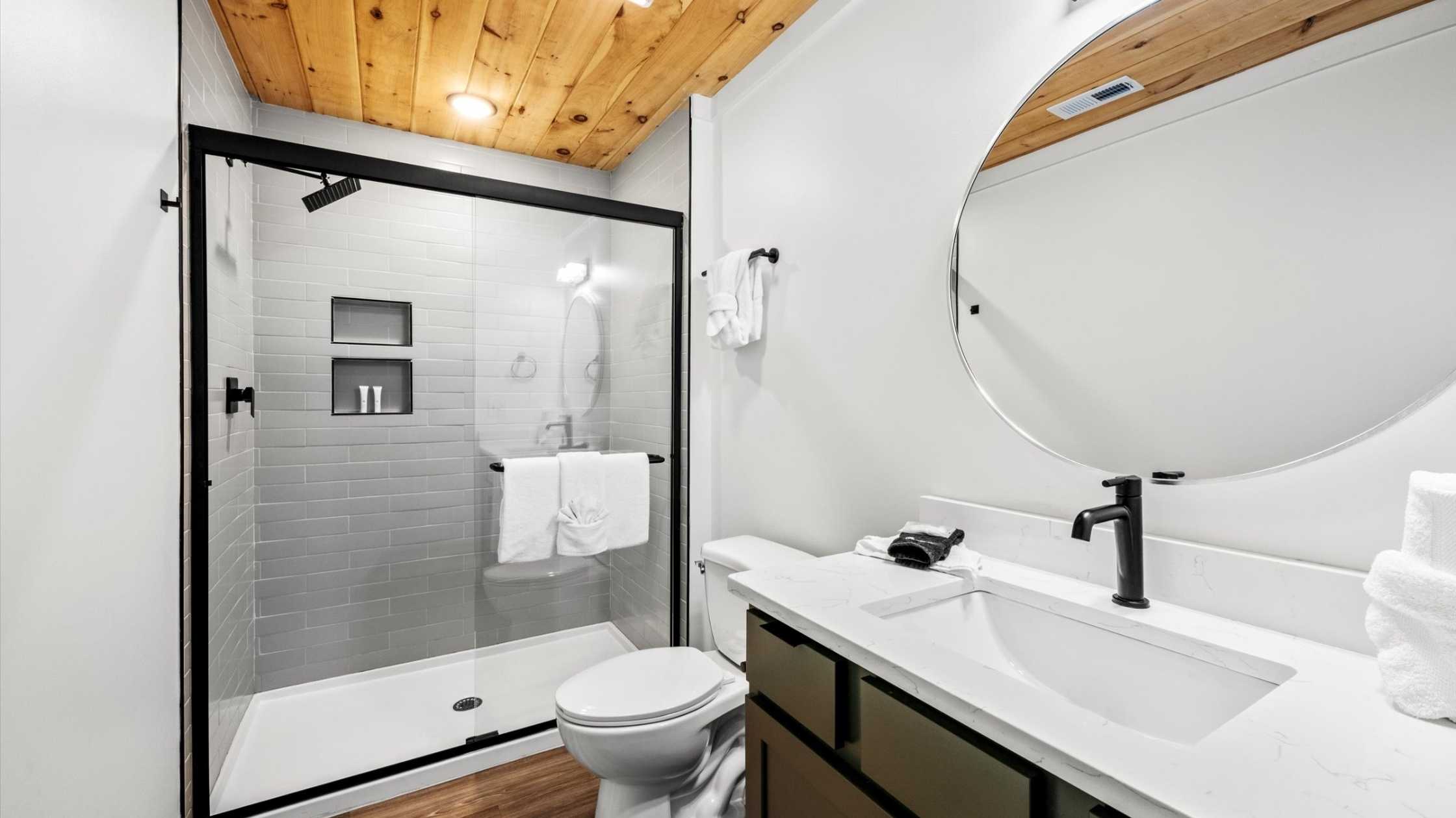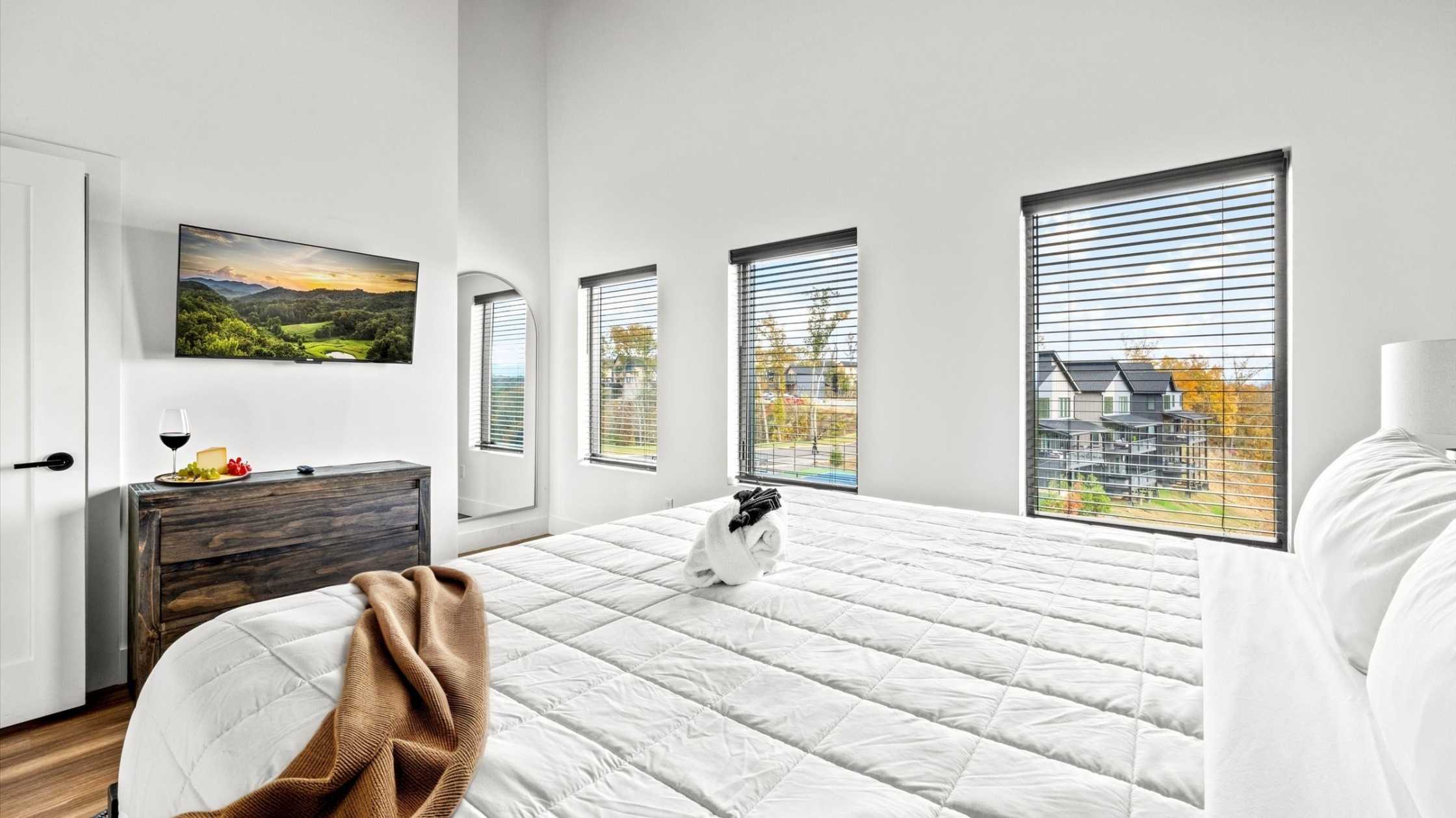 - Bedroom 4 (Upper Level): King bed, flat-screen TV, ensuite bathroom.