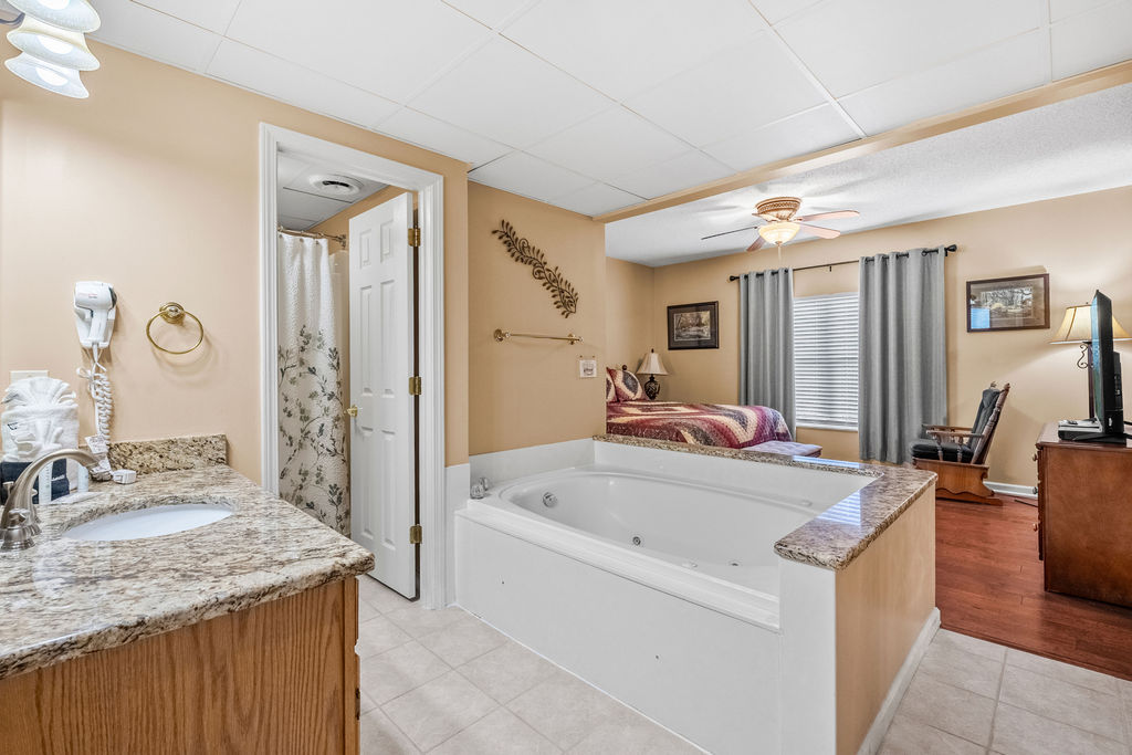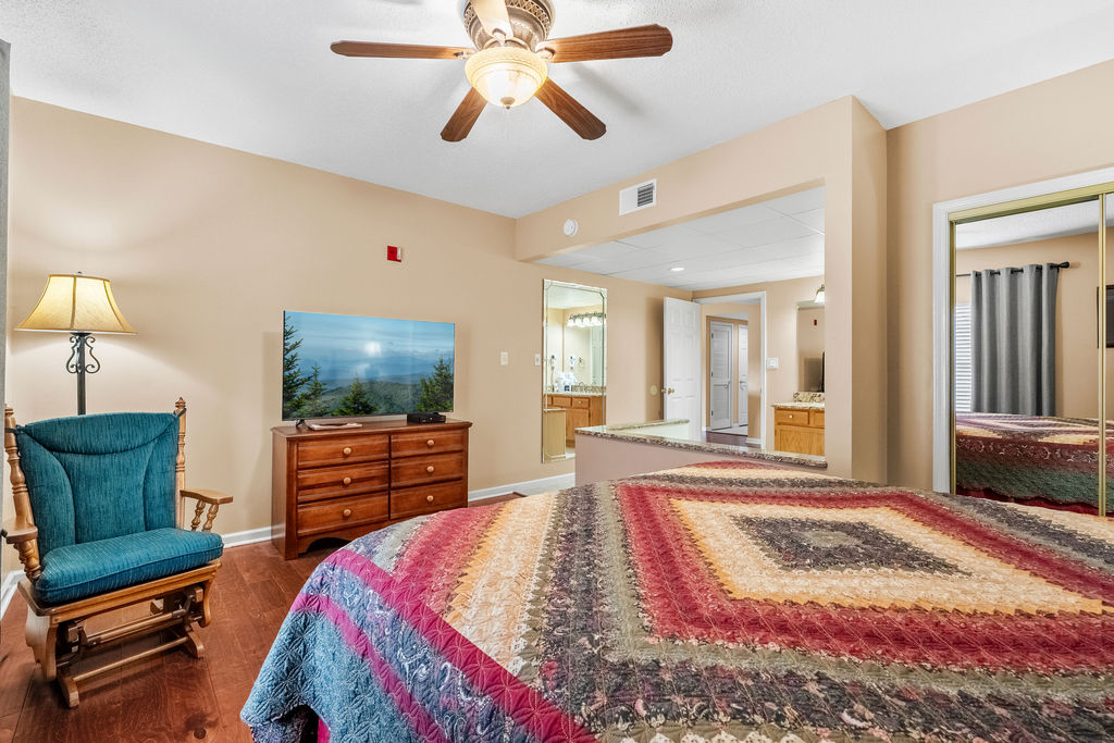The spacious living room is perfect to place to start your day, and to come back to rest after a day of adventures. The seasonal fireplace is great for those cold winter months. There is also a sleeper sofa. The balcony is located right off the living room, perfect to relax with a cup of coffee or have a family meal. The bedrooms each have a king bed. The master bedroom has a master bath including a jacuzzi tub. The kitchen is full equipped for you to prepare meals. There is also a washer and dryer for your convenience.