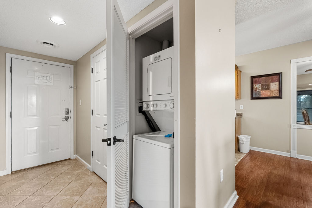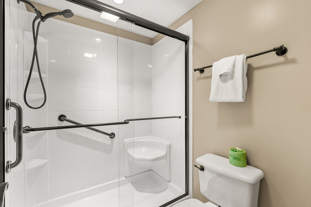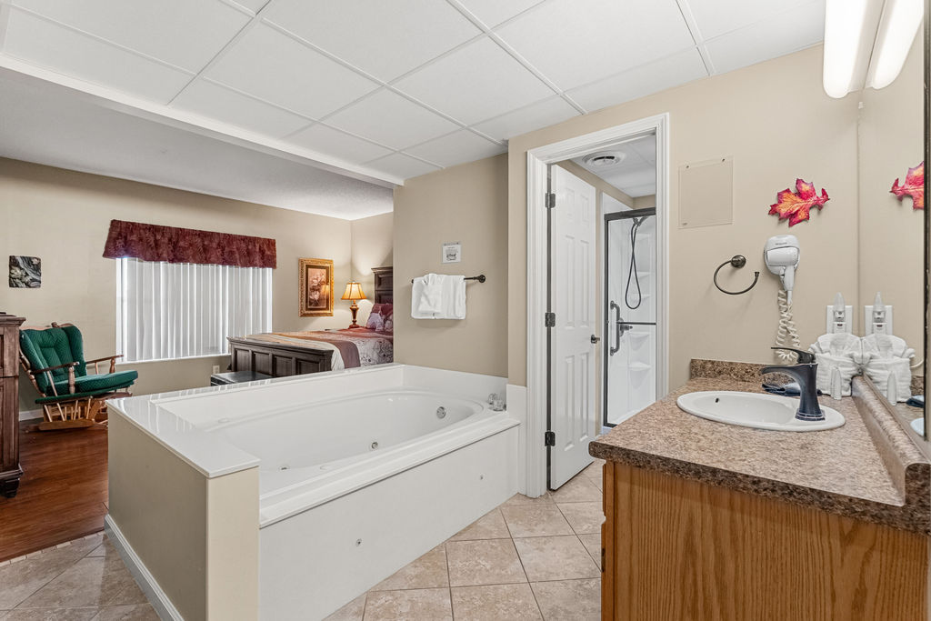 The master bedroom has a king bed, tv and whirlpool hot tub. It also has a private bathroom with a walk in shower. The second bedroom has a king bed with a tv also. The second bathroom has a walk in shower also. All linens and towels are provided. There is a washer and dryer for your convenience.
