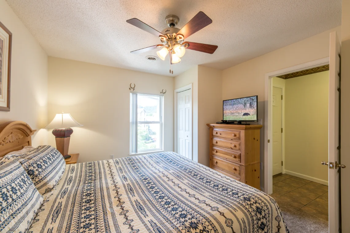 Located in Pigeon Forge near the Old Mill, you’ll love being so close to all the attractions of Pigeon Forge, Gatlinburg, and the National Park. The condo welcomes you with a spacious living room, a perfect spot to start and end your day of adventure. Settle in with your favorite movie or relax by the cozy seasonal fireplace. Step out onto your private balcony to enjoy a peaceful morning coffee. The comfortable sofa includes a sleeper, inviting two more guests to share memorable moments with you. The beautifully decorated bedroom has a king bed, ceiling fan and tv. The large bathroom has a shower and whirlpool tub combo. Your towels and lines are all included in the stay. The condo also has a washer and dryer for your convenience.